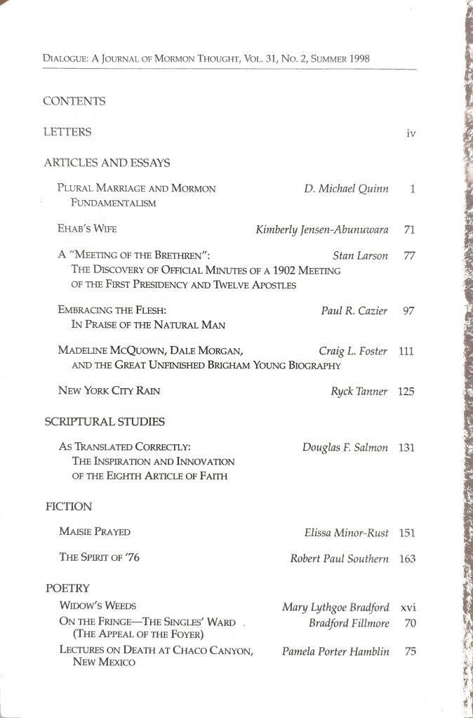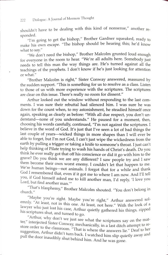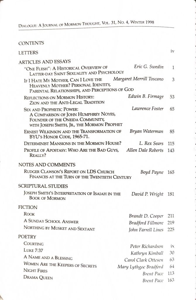 What to write about? Religion played such a central role in my life that I decided to give Mormon fiction another try. As a natural skeptic, I empathized with church members who broke the mold of traditional orthodoxy and found themselves on the outside looking in. I did once submit a short story to The New Era, the LDS Church’s official youth magazine, and was promptly rejected. As an official church publication, all stories had to be inspirational. I was not surprised by the rejection. While not opposed to inspirational writing, I’m more inclined to raise questions than provide answers, so Dialogue: A Journal of Mormon Thought was a more natural fit for me.