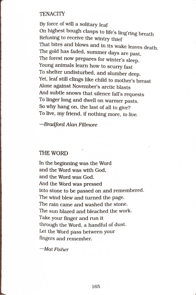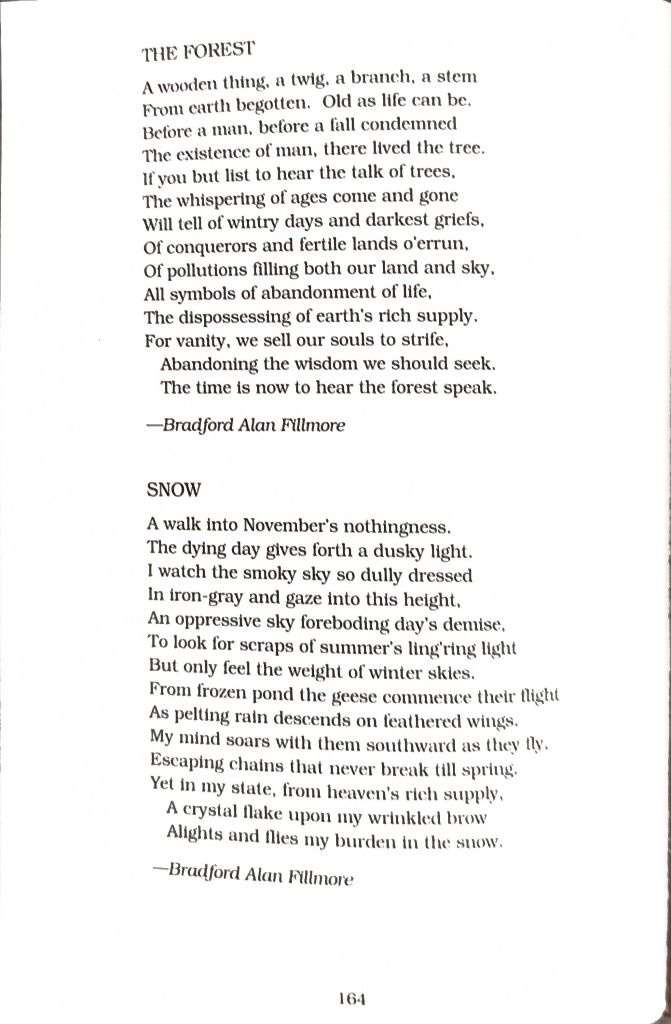 You might notice a melancholy tone in the sonnets. They were written in the fall, just after a girl I cared for deeply ended the relationship. Luckily for me, a break-up proved a catalyst for the sonnets. I had a little more time on my hands for soul-searching. 🙂 The collection, “Utah Sings,” was published by the Utah State Poetry Society. I doubt that they turned away too many submissions, but I am still pleased with sonnets.
